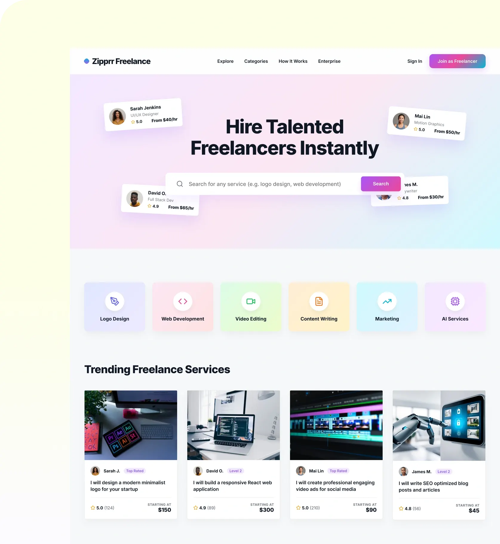 Built for freelancers, this clone solution keeps things simple with advanced features and a clean design. It’s responsive, easy to use, and light on your budget.