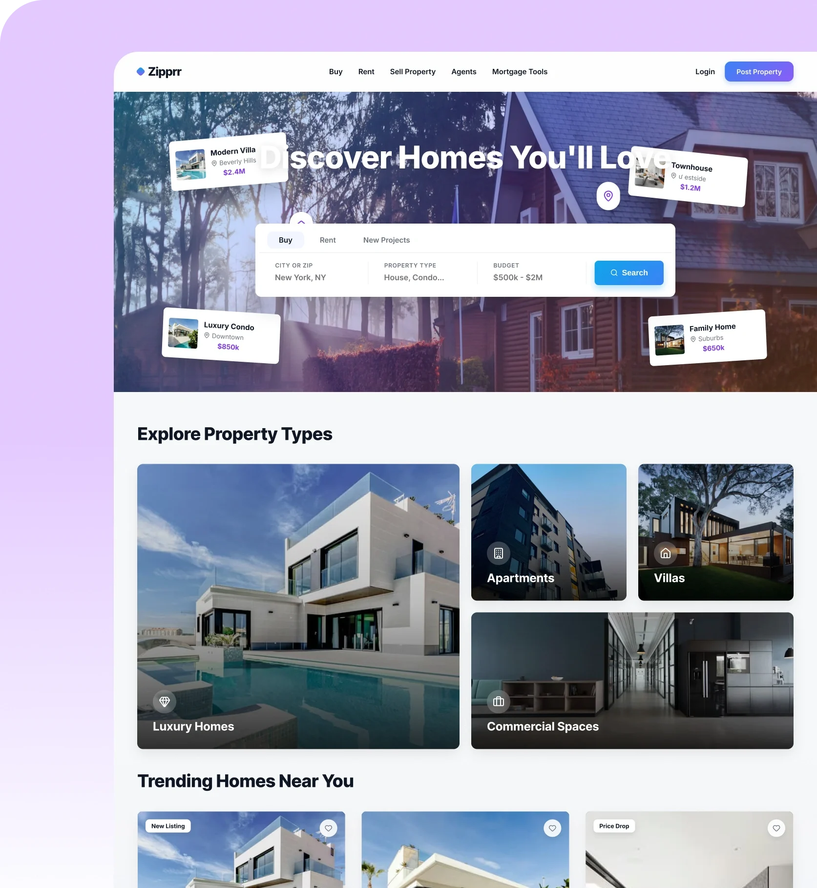 Start your own real estate marketplace in just 72 hours. Our solution is easy to customize, looks great, and helps buyers and renters find properties from the comfort of their home.