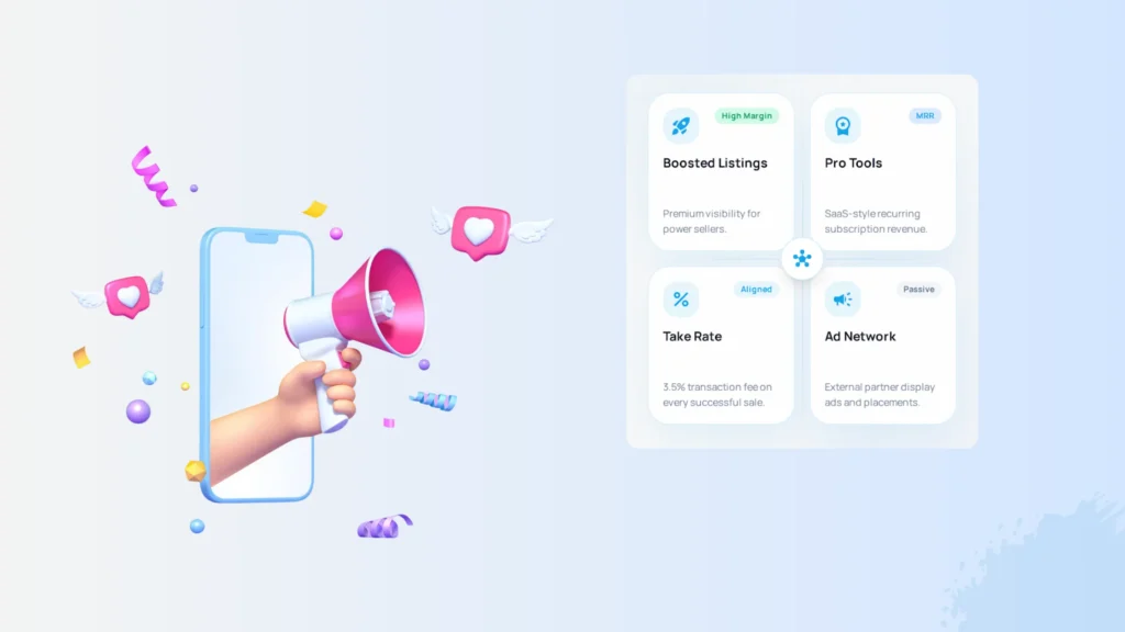 To build a sustainable marketplace, you must integrate models that align with how people buy and sell. The Featured and Boosted Listing model is your most immediate earner. Sellers pay a one-time fee to pin their items at the top of search results. This offers them 10x more visibility while providing the platform with high-margin, instant cash flow.