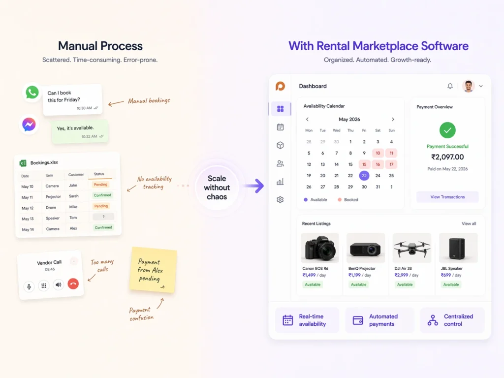When a rental business is small, manual work may feel manageable. Bookings can be handled through phone calls, WhatsApp, Instagram, email, or spreadsheets. But as the business grows, this manual process becomes difficult to control.