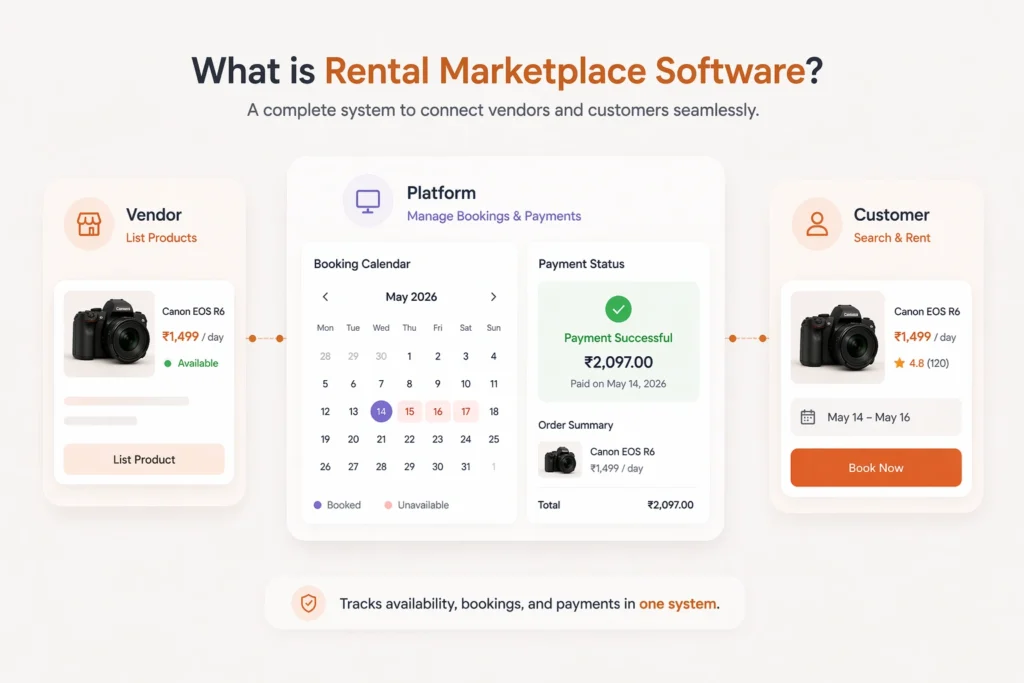 Unlike a normal e-commerce website, rental marketplace software manages time-based transactions. It must track product availability, rental start dates, return dates, booking status, deposits, cancellations, refunds, and vendor earnings.