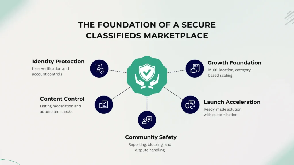 Effective classifieds apps use layered protection such as phone or email verification, listing moderation, and user reporting systems. Automated checks flag suspicious behavior, while admins can manually review content when needed.