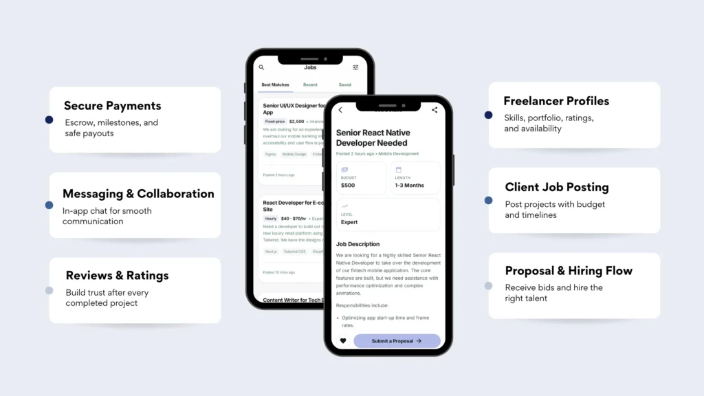 Finally, these platforms lower both operational and acquisition risk. Automated workflows reduce manual intervention, while proven monetization models make revenue forecasting more predictable. For founders evaluating build vs buy, an Upwork-like app provides a faster, safer path to validating demand and scaling growth.