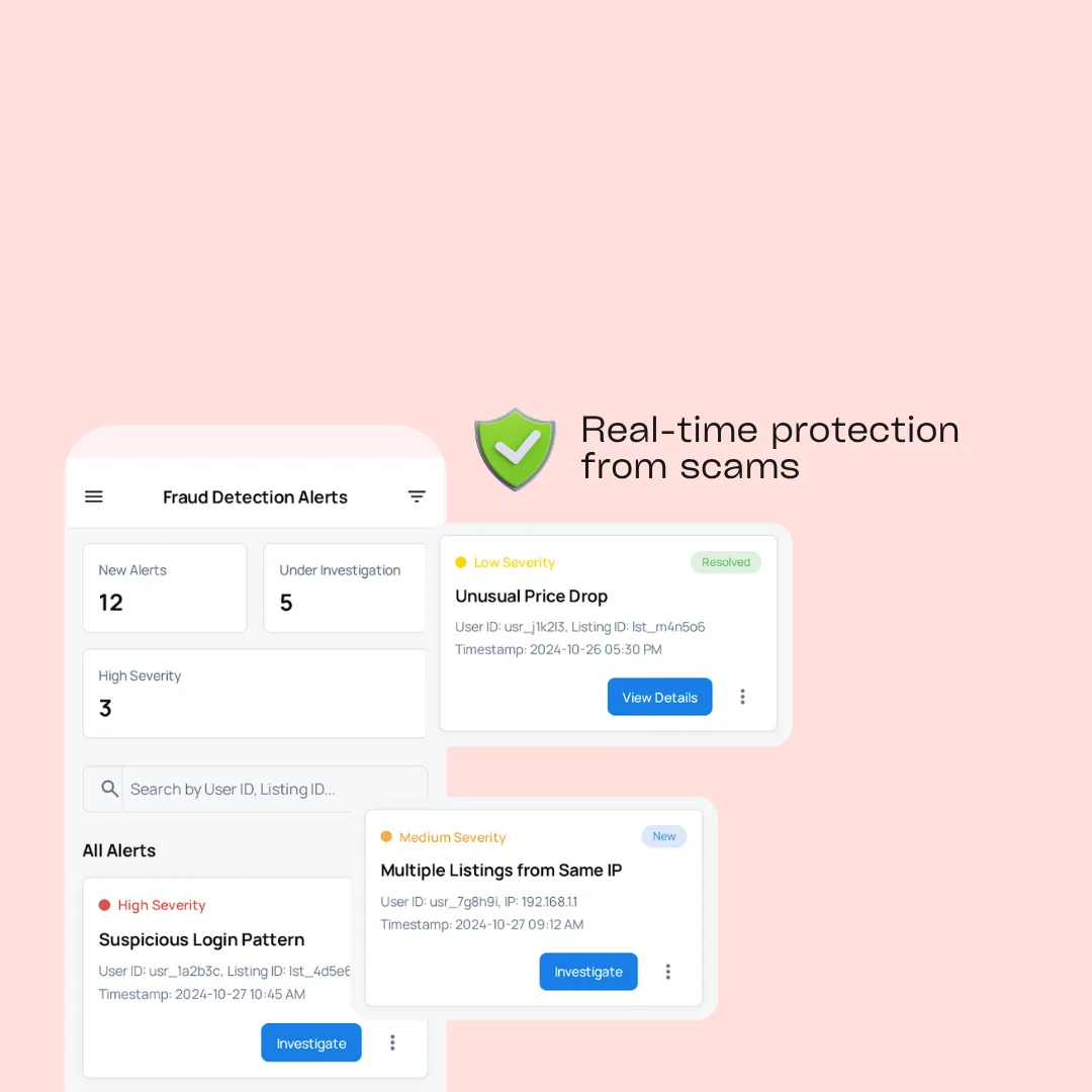 Fraud detection technology in our Craigslist Clone app tracks suspicious activity and fake listings in real time. It adds an extra layer of protection, keeping both buyers and sellers safe from potential scams.