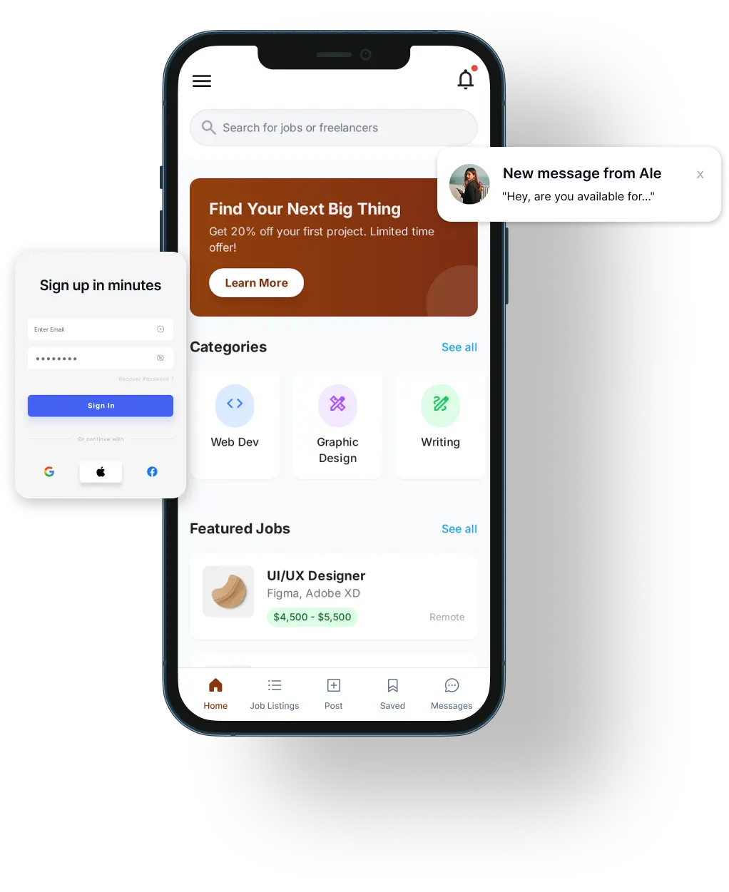 Freelancer Clone allows entrepreneurs to create a customized freelancing marketplace with web and native mobile apps.
