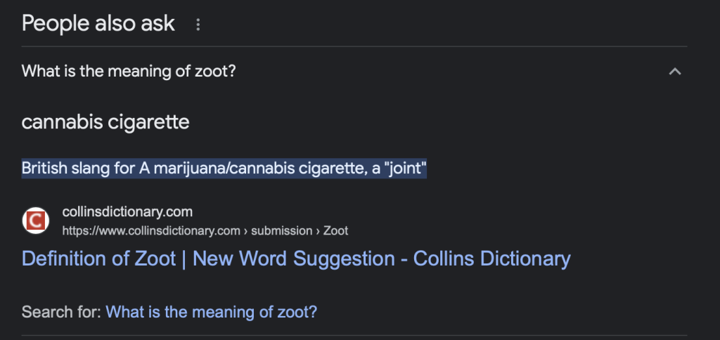 Zoot – its related to sports, textiles, clothing, cigarettes, medical marijuana based business name.