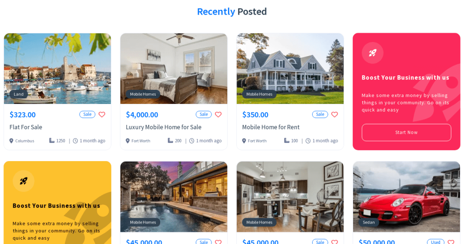 - Real Estate Classifieds: Real estate classifieds focus on properties available for sale, rent, or lease. Users can list properties, providing details such as location, size, price, and property features. Those looking for properties can search based on their preferences and needs. Including high-quality photos, virtual tours, and contact information can help make listings more appealing to potential buyers or renters.