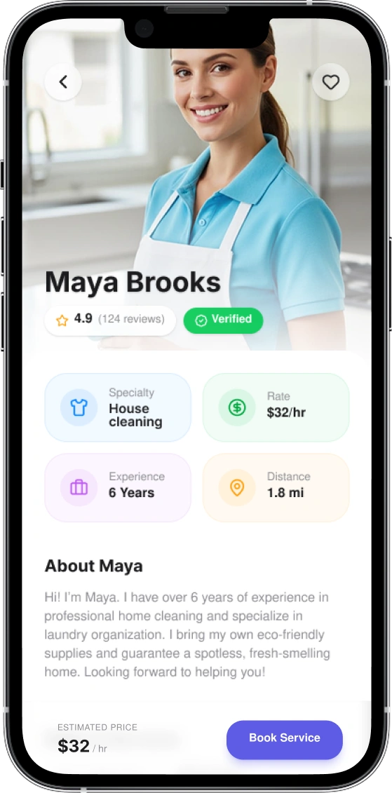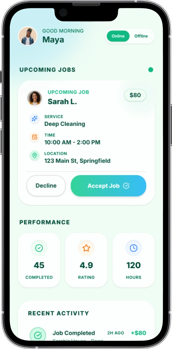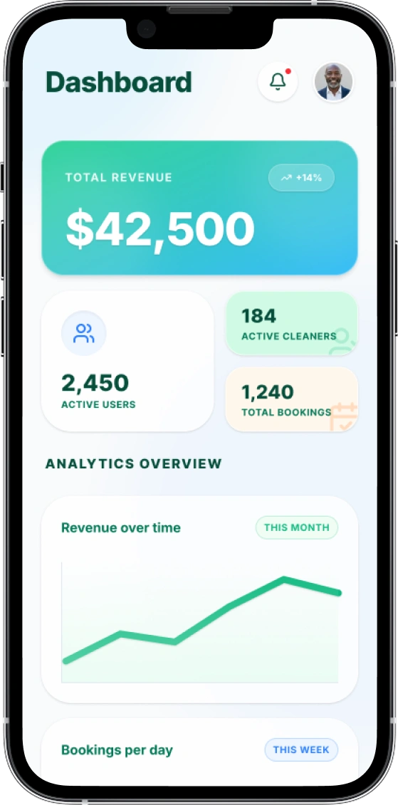 - Dashboard Overview – Monitor all bookings, payments, and cleaners.