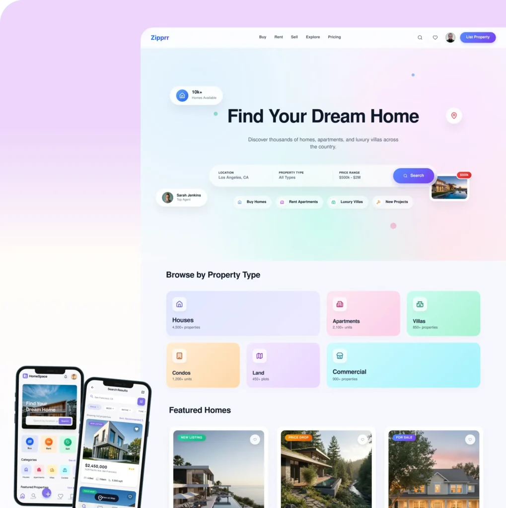 Built with the latest technologies, the Zumper clone helps you set up and launch your home rental marketplace, complete with a web app and mobile apps.